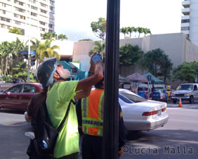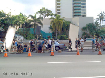 Una escena filmada en el centro de Honolulu, que involucra a 3 importantes personajes.