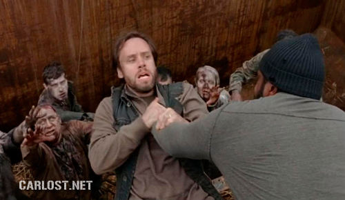 Lo agarra violentamente y le pregunta si acaso le contó también sus planes de matar a Michonne. Milton asiente, y el Gobernador lo empuja y se va.