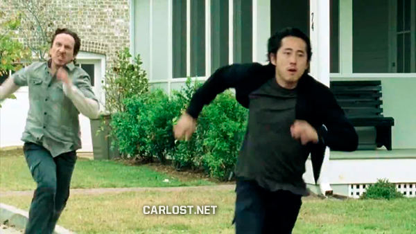 Dice también que los otros quisieron escapar, pero que él se quería quedar. Mientras esto sucede, Glenn se encuentra con Rick contándole lo que realmente sucedió.