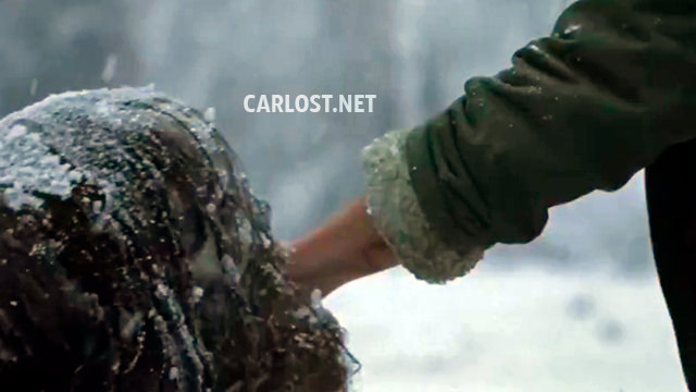 En la nieve, Lydia encuentra un caminante enterrado, se saca su guante y acerca su mano al caminante para que la muerda.