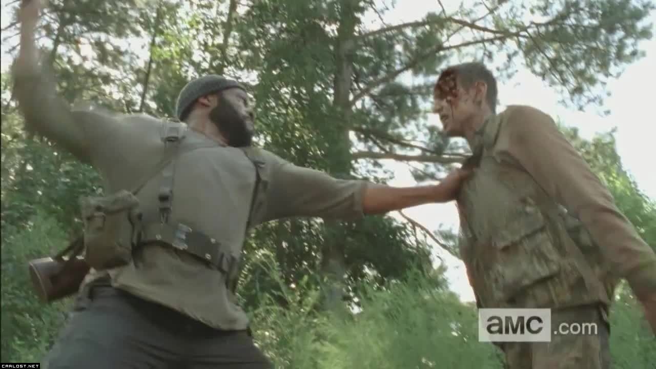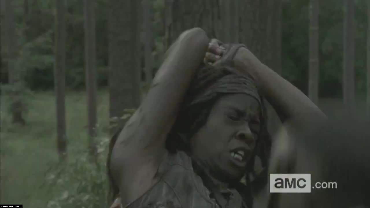 Al ver esta parte me dio la impresión de que cuando Mika disparan, Tyreese lo escucha y logra encontrarlas en el bosque.
